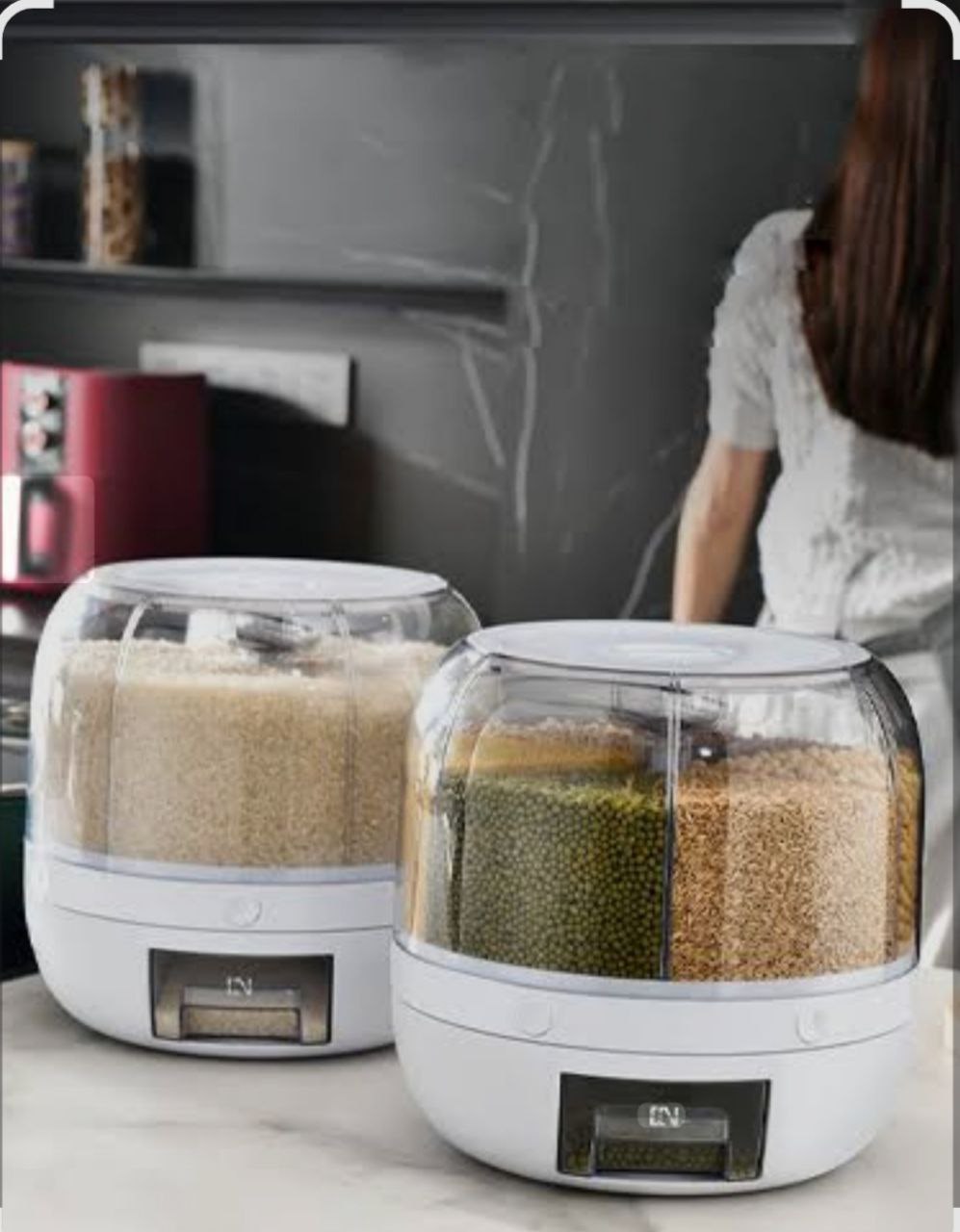 3. مخزن نگهداری جبوبات با بدنه قابل چرخش 360 درجه ساده و درب قابل جابجایی طراحی شده است که تمیز کردن و خشک کردن آن را آسان می کند.